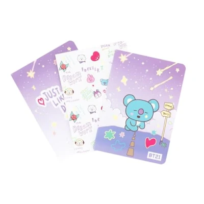 BT21 Merchandise - Calm and clever, just like Koya. This small pocket notebook is a serene and thoughtful companion for your everyday ideas. Pack Of Notebooks A6 - This pack includes 3 soft cover notebook, each with a unique cover design and a different interior: ruled, bullet and blank. Perfect for all your writing and creative needs. Small Notebooks Pocket Size - Measuring 10.5 x 14.8 cm, these mini notebooks are ideal for on-the-go use. With 32 sheets (64 pages) each, they’re great for journaling, sketching, note-taking or list-making. Stationery Supplies Notebooks - Each small notebook A6 features a 300 gsm printed cover and 80 gsm interior pages. Stylish, lightweight and made for everyday use. Creating Your Story - Grupo Erik creates 100% official licensed stationery and merchandise inspired by the world’s most loved brands. Combining functionality and durability, our products are designed to be part of your daily life.
