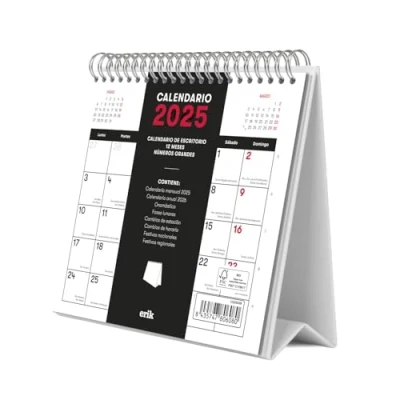 🗓 Desktop Calendars & Supplies - This modern compact desk calendar is designed with unique full coloured illustrations where dates can be seen clearly thanks to its premium paper. It also has a generous writing space allowing annotations and a high-quality stand. 🗓 Desk Calendar 2025 Flip Over - Set yourself up for the new year with this 8 x 7 inches - 20 x 17 cm desk top calendar 2025. The text appears in 6 languages: Spanish, Italian, English, Portuguese, French and German. Ideal as Christmas gifts or office desk gifts! 🗓 Desk Planner 2025 - This cute family calendar 2025 has been created to put bells and whistles to your desk. This desktop calendar is deal as an office calendar or kitchen calendar 2025. It features a reinforced base that will allow you to place it on any surface. 🗓 2025 Desk Calendar - At Grupo Erik we care about the environment and contribute using sustainable materials and FSC certified paper. Full of top-quality illustrations for every month. 2025 desk calendar month to view is perfect for anyone who need to write down its appointments, to do's and reminders. 🗓 100% Official - At Erik we make sure our products are made of the best materials out there, partnering with the most popular brand and licenses on the market. We pride ourselves on providing quality and durable products since 1997. Check our Amazon catalogue and discover our extensive range of stationery and merchandising products!