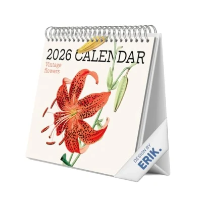 Grupo Erik Desk Calendar 2026 Vintage Flowers Month To View Monthly Planner, Desktop Gifts Under 10 Pounds For Friends