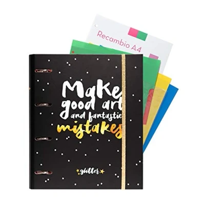 Grupo Erik Glitter Stars 4 Ring Binder Premium A4 Folder + 100 Sheets Dividers