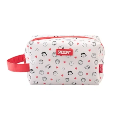 Official Snoopy Bag - Rectangular cosmetic bag with Snoopy Love Season design, officially licensed Peanuts Snoopy merchandise. A charming and practical accessory for fans of Snoopy and Peanuts characters. Compact Yet Spacious Design - These make up bag is designed to organise toiletries, make-up or grooming essentials without taking up unnecessary space. Approx. size: 20.5 x 13 x 9 cm, ideal for travel, gym or everyday use. Durable & Easy-Care Material - Made from high-quality polyurethane, offering durability, resistance to daily wear and easy cleaning, travel makeup bag is perfect for frequent use at home or on the go. Secure Zip & Practical Side Handle - Makeup case features a smooth zip closure to keep contents protected and a handy side handle for easy carrying, making it simple to transport in suitcases, backpacks or gym bags. Creating Your Story - Grupo Erik creates 100% official licensed stationery and merchandise inspired by the world’s most loved brands. Combining functionality and durability, our products are designed to be part of your daily life.
