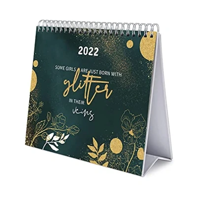 Grupo Erik Official Glitter Calendar 2022 Desktop Desk 12 Month Planner, Dark, CS22023