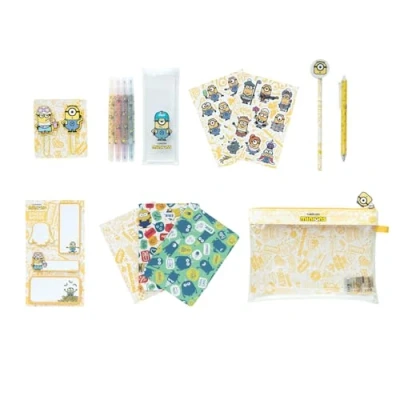 Grupo Erik Stationery Set Minions Pencil Case With A6 Notebooks, Highlighters, Sticky Notes, Paper Clips, Stickers, Pen, Minion Gifts