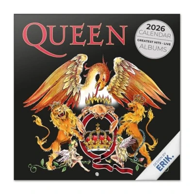 OFFICIAL WALL CALENDAR 2026 – THE PERFECT GIFT FOR FANS – This officially licensed rock band calendar 2026 includes 12 stunning images and a grid for the last 4 months of 2025. Perfect Queen merch as birthday gifts or Christmas gifts for fans of all ages. PRACTICAL AND DECORATIVE – STAY ORGANISED IN STYLE – Family planner calendar 2026 monthly runs from January to December 2026, with spacious daily boxes to note birthdays, appointments or reminders. The 29.5 x 29.5 cm square format is ideal for home, kitchen or office. PREMIUM QUALITY FINISH – DESIGNED TO LAST ALL YEAR – Family calendar 2026 month to view is printed on high-quality 140 gsm matte coated paper, with 250 gsm laminated covers for extra durability. Includes a 5 mm hole for easy wall hanging and a stapled binding. MULTILINGUAL AND ECO-FRIENDLY PACKAGING – 2026 calendar month to view text available in 6 languages: English, Spanish, French, Italian, German and Portuguese. Presented in a sturdy 300 gsm cardboard envelope, perfect for gifting or storage. Creating Your Story - Grupo Erik creates 100% official licensed stationery and merchandise inspired by the world’s most loved brands. Combining functionality and durability, our products are designed to be part of your daily life.