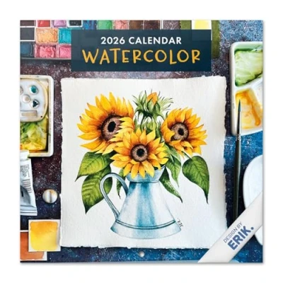 Grupo Erik Wall Calendar 2026 Watercolour Art Square 30 x cm 12 inches Planner, Family Planner Month To View Gifts For Friends