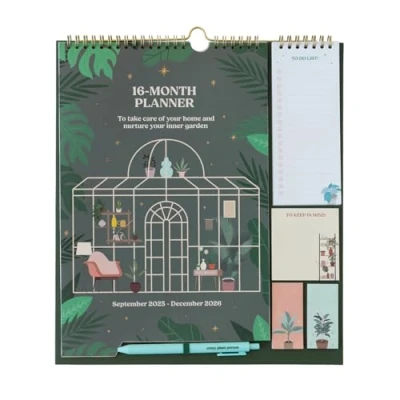 Grupo Erik Wall Planner 2026 Plants Gifts For Family Monthly With Stickers, Pen, Shopping List, Sticky Notes Calendar 16 Months Sep 2025 Dec