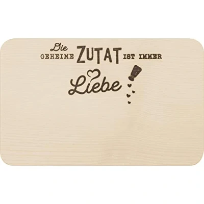 Wooden board with saying: wooden board with burnt text "Die geheime Zutat ...", maple wood, dimensions: 24 cm x 15 cm x 1 cm, made in Germany, perfect for starting the day with a loving message at the breakfast table TRENDY: Whether llama, sloth or trendy sayings, colours, shapes and material for a natural, sustainable look – we ensure that the latest trends end up at home, with family, friends and colleagues. @@@gGfhCa/AcD2tYiVK5v+vmZAf4As46vdZ@@@ gift: as a gift for your boyfriend, girlfriend, birthday, surprise, Easter, Christmas or just as a personal gift. As a gift for mum, dad, grandma, grandpa, for her, for friends and family and for your favourite person. The brand Gruss & Co: Lovingly designed in Germany by our traditional company Sheepworld AG, since 1997 on the Schafhügel in the heart of the Upper Palatinate in Bavaria.