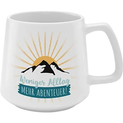 Naturally beautiful and modern: mugs, coffee mugs and tea cups in natural, contemporary design, matte look and with loving text. This contemporary sayings mug brings a trendy nature look, colour and fresh wind to the laid table, coffee round and in the office. Mug in conical shape: mug with trendy, conical shape and coloured motif print, mug with saying "Less everyday life, more adventure", material stoneware, volume 43 cl, packed in gift wrap made of kraft paper (Banderole FSC certified). TRENDY: Whether llama, sloth or trendy sayings, colours, shapes and material for a natural, sustainable look – we ensure that the latest trends end up at home, with family, friends and colleagues. Ideal gift: as a gift for family, friends, colleagues, as a thank you, birthday or just as a thoughtful souvenir and as a small surprise. Suitable as a gift for girlfriend, mum, dad, grandma, grandpa, brother, sister and all other favourite people. The brand Gruss & Co: fresh and trendy designed in Germany by our traditional company Sheepworld AG am Schafhügel, since 1997.