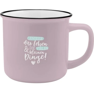 Funny and loving sayings: cups and favourite mugs with colourful motifs and matching text for a good start to the day. This lovingly designed jumbo mug puts a smile on your loved one's face and brings colour to the breakfast table, office or coffee round. XL mug with saying: large mug, coffee cup or tea cup made of porcelain with coloured motif decoration and saying "Genieße das Leben und die kleinen Dinge", volume 55 cl (suitable for a capacity of around 50 cl), diameter 10.2 cm, height 10.5 cm, mug in enamel look with black drinking rim, packed in a matching gift bandole. Fully trendy: whether lama, sloth, avocado or trendy sayings, colours, shapes and sustainable materials – we ensure that the latest trends end up at home with loved ones, in the family or in the circle of friends. Ideal gift: as a gift for family, friends, colleagues, as a thank you, birthday or just as a thoughtful souvenir and as a small surprise. Suitable as a gift for girlfriend, mum, dad, grandma, grandpa, brother, sister and all other favourite people. The brand GRUSS & CO: this GRUSS & CO branded item has been lovingly designed in Germany by our traditional company Sheepworld AG, since 1997 on the Schafhügel in the heart of the Upper Palatinate in Bavaria.