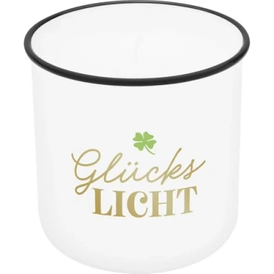 GRUSS & CO Candle in Cup Motif Glückslicht, Printed Cup, Porcelain, Height 8.8 cm, Diameter 8.4 Gift, Decorative Item, 74772