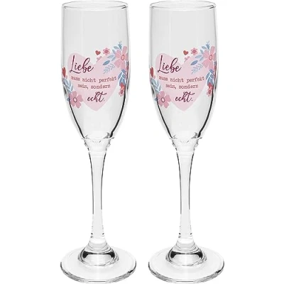 Funny and loving sayings: drinking glasses, champagne glasses and drinking bottles with lovingly designed motifs, modern colour combinations and matching text for a beautifully set table. This Secco glass gift set for two is a stylish table top accessory and also a fun and loving gift. Champagne glasses set for two: the gift set contains 2 champagne glasses in a classic shape, 20 cl capacity per glass, Secco glasses printed in colour with motif decoration and saying, for combining, giving as a gift and as an eye-catcher at the table, for sparkling wine, Secco, delicious alcohol-free sparkling wine or another sparkling soft drink. TRENDY: Whether llama, sloth, avocado or trendy sayings, colours, shapes and material for a natural, sustainable look - we ensure that the latest trends end up at home, with family, friends and colleagues. Ideal gift idea: suitable for any occasion as a gift, for example for Valentine's Day, anniversary, birthday, Christmas or just as a beautiful souvenir. Suitable as a gift for your girlfriend, boyfriend, mum, dad, partner, for her, for him and all other favourite people. The brand Gruss & Co: Lovingly designed in Germany by our traditional company Sheepworld AG, since 1997 on the Schafhügel in the heart of the Upper Palatinate in Bavaria.