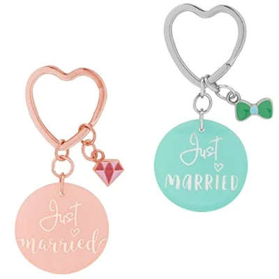 GRUSS & CO Just Married Partner Keyring Pendant Set, Acrylic, Length 8.3 cm Wedding Gift 48092
