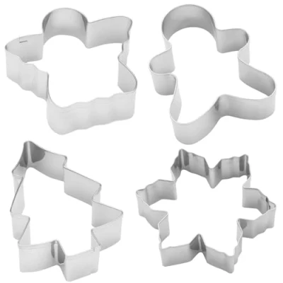 GRUSS & CO Vanilla Cookie Cutter Set, Gift Set with 4 Cutters, Christmas Tree, Angel, Gingerbread Man, Snowflake, Baking Moulds, Cookies, 51133