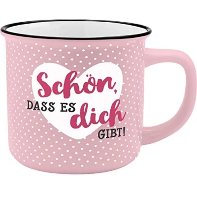 High-quality coffee mug made from New Bone China porcelain, nostalgic enamel look Mug with saying "Schön, dass es dich gibt", volume approx. 35 cl Beautiful mug with decorative cardboard gift wrap A lovely gift for your boyfriend, girlfriend or colleague, for birthdays, Christmas or Valentine's Day., Weight: 0.58642961692 pounds, Manufacturer: Sheepworld AG