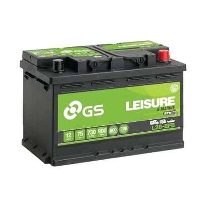 SPECIFICATIONS: 12V High performance Battery; Capacity: 75 Ah; Startup Power (CCA): 730 Amps; Size (mm): 278 x 175 x 190; Weight (kg): 18.3. RELIABLE TECHNOLOGY: This GS L28-EFB Leisure battery are specially designed to provide dependable, stress-free power and long battery life. DURABILITY: Designed for up to 160 cycles of reliable power supply, suitable for leisure, caravan, motor home & marine use SAFE TO USE: Integrated flame arrestor for added safety during use, with a durable carrying handle for easy transportation READY TO GO: Manufactured to original equipment quality & specification, Supplied charged and is ready to fit perfect for those long trips on the road