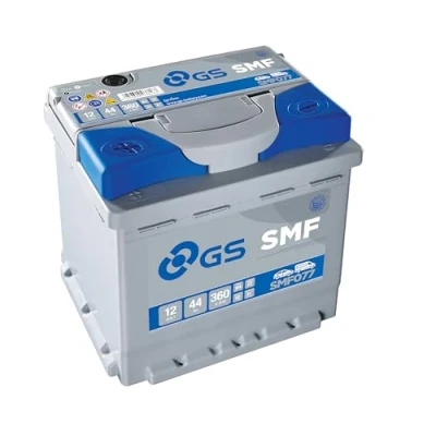 SPECIFICATIONS: 12V High performance Battery; Capacity: 44 Ah; Startup Power (CCA): 360 Amps; Size (mm): 207 x 175 x 190; Weight (kg): 12.2. 40,000 ENGINE STARTS: Built to withstand up to 40,000 engine starts this GS SMF077 battery is designed to keep your car, truck or van running smoothly STATE OF CHARGE INDICATOR: Features a state of charge indicator to monitor battery health easily and prevent unexpected breakdowns LEAK-PROOF DESIGN: Features spill proof technology with a double sealed lid for added safety and peace of mind during use CONVENIENT FEATURES: Integrated carrying handle for easy transport & installation with flame arrestor technology ensuring safety during use