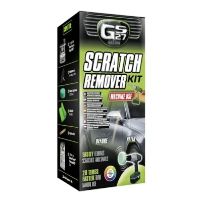 GS27 SCRATCH ERASER KIT: Offering amazing results effortlessly, the GS27 Rubber Scratch Kit connects to a drill or screwdriver, quickly and easily eliminates over 90% of surface scratches on bodywork. UNIVERSAL AND EFFECTIVE: Compatible with all standard drills and screwdrivers, this accessory set can be used on all painted paints, regardless of their colour nuances. QUICK RESULT: The mechanical action of the foam combined with the rapid rotation of the drill allows you to remove scratches 20 times faster than by hand! In less than a minute, the treated scratch is gone. Contents of GS27 SCRATCH RUBBER KIT: This very complete set contains 1 x 100ml jar of GS27 Expert Scratch Eraser, 1 drill adapter ø8 mm, 1 application foam 80 x 30 mm, 1 microfibre 40 x 40 cm and 1 wooden spatula. GS27, Reference for maintenance products: For over 50 years, GS27 has been developing innovative cleaning solutions, integrating components of the latest technologies, for the maintenance of cars, motorcycles and bicycles.