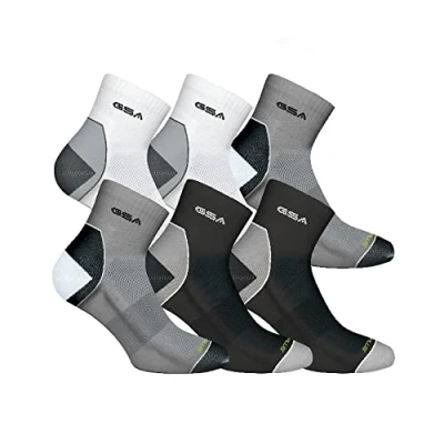 ORGANICPLUS[+] sustainability: Our Cotton socks for men are made with pure, natural, organic cotton fibers. Every purchase contributes to better water, air, soil management and improved farmer livelihoods. ULTRALIGHT MESH: Our cotton trainer socks made of durable and skin-friendly fibers ensure breathability and control temperature for a cool and dry feel. SECURE FIT: top elastic rib ensures stay-up comfort, perfectly adapting to your feet without leaving any marks. With a snug fit and no-shrink, even after repeated washings. Tested for maximum durability our low cut mens performance socks is your perfect choice for your everyday activities. EXTRA CUSHION: unbeatable comfort, improved fit and shock absorption thanks to the extra-cushioned soft bottom. These quarter men's running socks will become your best ally during exercise. GSA means Global Sustainable Athletics, which stands for sustainable sportswear for the whole world, a sportswear brand of advanced technology and performance, using sustainable materials and environmentally friendly methods.
