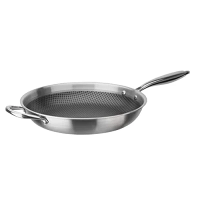 Versatile - The frying pan (diameter 32 cm) with stainless steel honeycomb structure ensures ideal fat distribution and is ideal for stewing, steaming and roasting meat, vegetables and much more. Energy-saving cooking - The perfect heat conduction from the bottom to the edge ensures quick and efficient preparation of food. Safe handling - The practical counter handle ensures safe carrying of the pan. The durable non-stick coating prevents food from sticking and makes cleaning easier. Robust workmanship - The three-layer material made of 18/8 stainless steel, aluminium and 18/2 stainless steel makes the pan resistant to scratches and wear. Universal - Suitable for all standard hobs including induction for maximum flexibility in the kitchen.