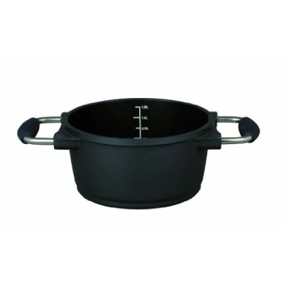 GSW Stahlwaren GmbH Cast Aluminium Cooking Pot, 16 x 8.5 cm, 1.3 L, Stainless Steel, Black, 30 cm
