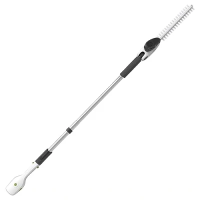 CurrysYou won't need a ladder to trim tall hedges and stray twigs anymore. This GTech lightweight hedge trimmer can reach heights of up to 10 ft so you can have your Cherry Laurel's looking neat and tidy across the top as well as the sides. It's got a 140° rotating head, so you can prune your shrubs in any shape you want. Make a dinosaur or a simple square hedge - the choice is yours. Best of all, it only weighs 2.1 kg, so you don't need to be Arnold Schwarzenegger to use it. Good to know - The 315 mm blade makes trimming more efficient and can get through thick branches- It can run for an hour on full charge so you can shear your entire garden quickly - Press the safety switch to stop the trimmer as soon as you're done to avoid accidents - There's an LED indicator to show you how much pruning power is left - It's cordless so there are no annoying cables to trip over while sprucing up your garden