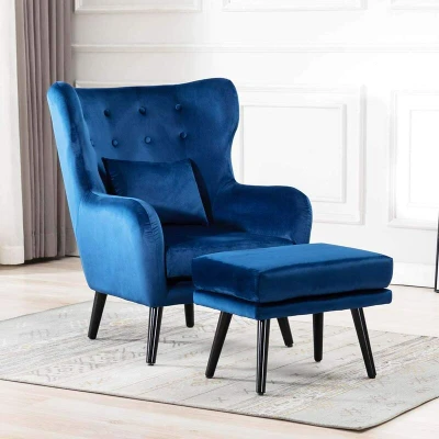 GTFORCE WINSLOW WING BACK OCCASIONAL LIVING ROOM BUTTON VELVET FABRIC ACCENT CHAIR w STOOL ARMCHAIR