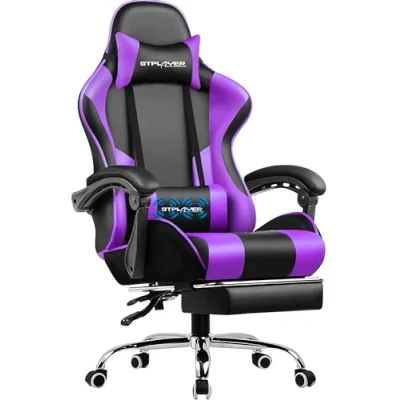 GTPLAYER Gaming Chair, Massage Ergonomic Computer Chair with Footrest and Lumbar Support Height Adjustable 360 Swivel Seat Headrest for Office Purple