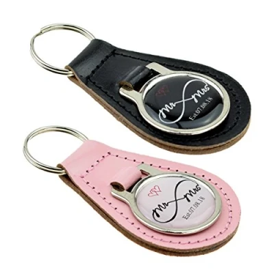 GTR Prestige Giftware Personalised Mr & Mrs Est Date Wedding Design Bonded Leather Keyring Set
