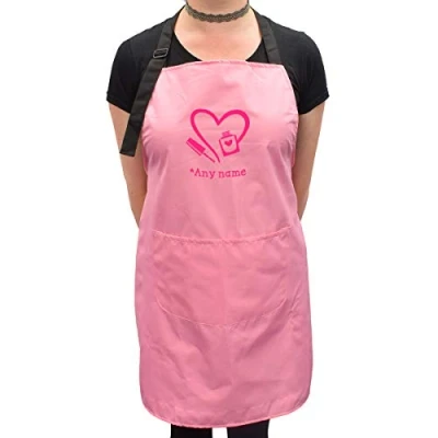 GTR Prestige Giftware Personalised Name Nail Manicure Design Unisex Pink Protective Apron XAPN041