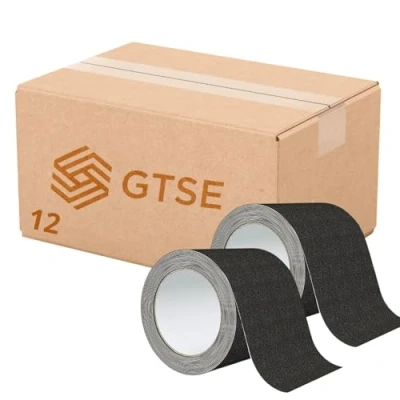 GTSE 12 Rolls, 100mm x 5m Black Anti Slip Tape, High Traction, Strong Grip Abrasive, Non Skid Tape for Indoor/Outdoor Use, Tread Warning