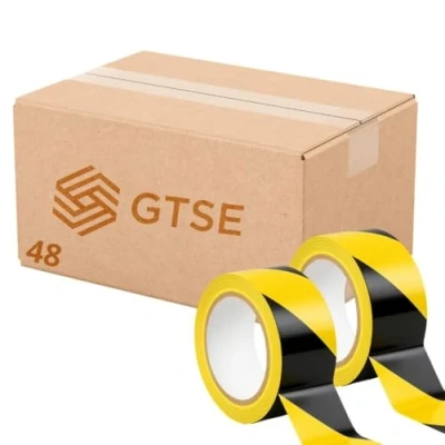 GTSE Hazard Tape Black and Yellow, 50mm (2") x 33m, Strong Adhesive Warning/Caution Tape, Floor Marking 48 Rolls