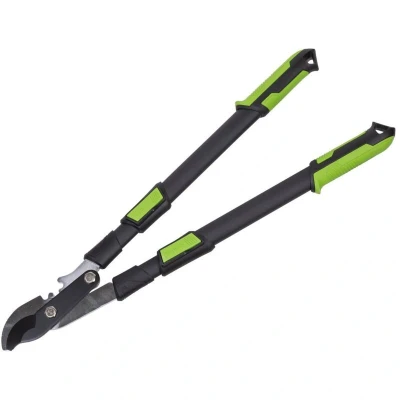 General description Geared technology for effortless pruning, this Sealey GTSG016 Telescopic Bypass Lopping Shears offers boosted cutting power, allowing you to handle tough branches with ease and precision. Technical specifications Blade Material: 5mm Carbon Steel, Teflon-coated Lower Blade: 5mm chrome-plated Handle Material: Powder-coated steel Grip Material: PP (15% fibre) and TPR Compatibility and accessories None specified Installation None specified Usage Designed for pruning tough branches with precision Telescopic handle allows for extra reach for high branches Other information ABS lock for safety Ergonomic, non-slip grip maximizes comfort and control during extended use