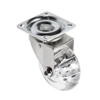 GTV Brazilia furniture castor without lock, swivel castors for furniture, steel/PC/PU, diameter 75 mm, wheels 360 degrees, total load per castor, 64 kg transparent