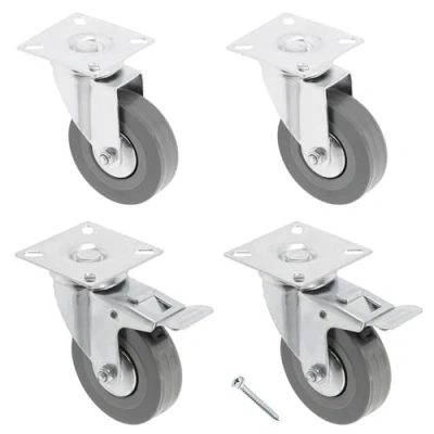 GTV Furniture castors Greyroll swivel castors, set of 4 for furniture, 2 x with brake, without made steel and rubber, 16 PanHead screws 5 15/16, diameter: 75 mm,
