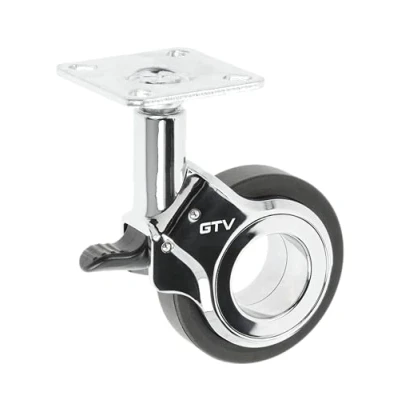GTV Gira Furniture Castors, Castors for Furniture, with Brake, Diameter 60 mm, Made of Plastic and Steel, Black + Chrome