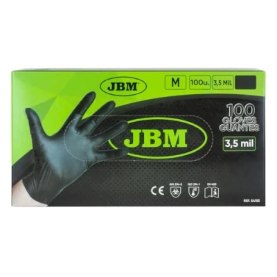 GUANTES NEGROS DESECHABLES DE NITRILO T:M 3.5MIL, Manufacturer: JBM