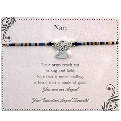 CRAFTED WITH LOVE: This gorgeous bracelet for women features a little angel charm and a sparkling rhinestone in the midst. These adjustable bracelets with beads will be a worthy addition to your accessory collection for any occasion UNCONDITIONAL LOVE: Our guardian angel card comes with a beautiful message for your nan who is there for you through thick and thin. "Your arms reach out to hug and hold, love that is never-ending, a heart that is made of gold" You are an angel! ENDLESS LOVE: Express gratitude to your Nan with our angel bracelet that comes superbly packaged with a Guardian Angel signature envelope and a space on the back card to write a personalised message. Granny will be happy while reading your emotions PERFECT GIFT FOR NAN: Express your love for your beloved nan or grandmother with these guardian angel gifts. This lovely angel bracelet is a more meaningful and beautiful present for your nana or grandma. That she will hold and cherish forever. CARE FOR JEWELLERY: This elegant bracelet will tarnish over time, to avoid it tarnishing faster than it should keep it from coming into contact with materials such as detergents, bleaches, ammonia, chlorine, perfumes, body creams and hairspray, Manufacturer: Xpressions gift.