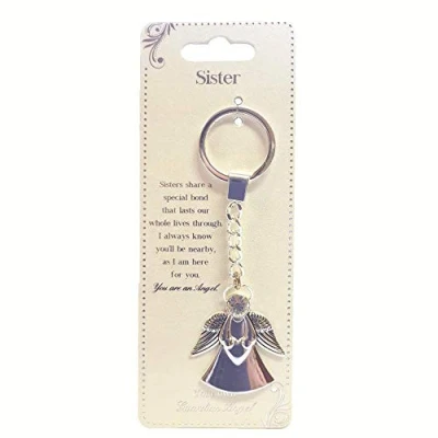 UNIQUE DESIGN: This keychain for women features a graceful Guardian Angel joining its hands to form a heart shape. Our key chain for sister is encrusted with a brilliant rhinestone in the centre which will complete your travel accessory collection SIBLINGS BOND: Occasionally you have to display your love to your cute little sister no matter how much you fight. This unique keychain for sisters comes with a space on the back card to write a personalised message and have a joyous moment MY SECRET KEEPER: Our lovely Guardian Angel Keychain comes with a wonderful caption written on an angel card, "Sisters share a special bond that lasts our whole lives through. I always know you'll be nearby, as I am here for you. You are an Angel! GIFT FOR HER: Now spread happiness and rapture with incomparable lovely keychains for car keys and silver key ring for women. Our guardian angel gifts offer a thoughtful and practical everyday gift for almost any occasion, religious or otherwise. QUALITY THAT MATTERS: This jewellery gift is made of the finest quality material. It is crafted with a beautiful silver tone nickel-plated finish with a smooth surface. Our angel keychain is sturdy and durable, allows you to use it for a long time, Manufacturer: Xpressions gift.
