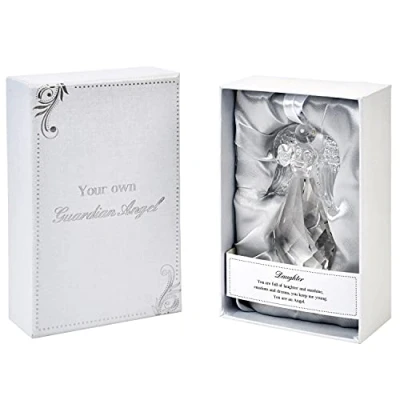 Guardian Angel Daughter, Crystal Figurine for Home, Garden, Office or Car Decoration, Religious Heartwarming Caption in Gift Box Transparent, One Size