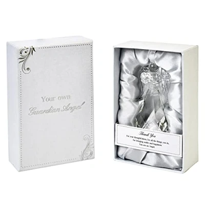 Guardian Angel Thank You, Crystal Figurine for Home, Garden, Office or Car Decoration, Religious Heartwarming Caption in Gift Box Transparent, One Size