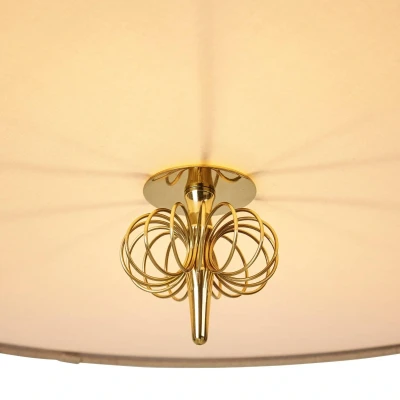 Lights.coCosy 1967 pendant light - Vintage design by Paavo Tynell The 1967 pendant light from the Danish brand GUBI is a cosy source of light with an elegant touch in living and lounge areas. The conical lampshade made of light-coloured Canvas fabric gently emits the light from the two E27 bulbs in all directions. The structure with a decorative, spiral-shaped element underneath the lampshade is made of polished brass. The design of this 1950s-style hanging light comes from industrial designer Paavo Tynell, whose concepts are considered milestones in Finnish lighting design and who is known as "the man who made Finland light".