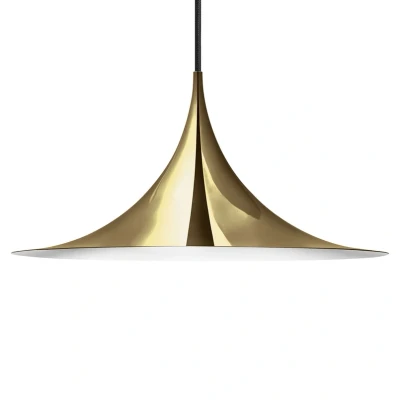 Lights.coThe lampshade of the Semi pendant light captivates with its harmonious, concave curved shape and dazzling brass finish, which makes the entire lampshade shine. The brass tone lends the light it emits additional warmth. The Semi pendant light thus creates a pleasant atmosphere – especially when used as a light source above a table. The design is by renowned Danish designers Claus Bonderup and Torsten Thorup, who have been working together since graduating from the Danish School of Architecture in 1969. The successful designer duo has designed clocks and interiors for Georg Jensen stores; they designed the harbour facilities in Helsingør, from urban planning to the ferry terminal, as well as the Arcticum Museum in Finland. The Semi pendant light is produced by the Danish company Gubi, which has been dedicated to manufacturing high-quality design products in the interior design and lighting sector since its foundation in 1967.