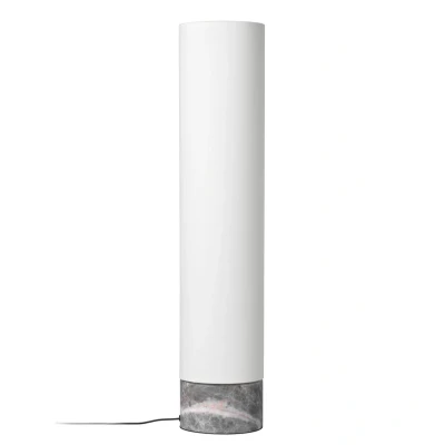 Unbound designer floor lamp: grey marble base, white lampshade Signe Bindslev Henriksen and Peter Bundgaard Rützou took inspiration from Japanese rice paper lamps when designing the Unbound LED floor lamp. They combined Scandinavian minimalism and Japanese design language in this lighting fixture. Both the lampshade and the base are designed in an asymmetrical teardrop shape. The lampshade can be rotated freely over the base. The combination of white linen fabric and grey marble creates a natural, elegant look. This floor lamp fits perfectly into living rooms and bedrooms and its natural style makes it a special interior accessory. Unbound also creates a magical lighting effect that creates a feeling of comfort. The brightness of the light can be adjusted using the integrated cable dimmer. The Unbound floor lamp is manufactured by Gubi, the Danish design product manufacturer that reinterprets design icons of the last century and creates the classics of tomorrow.