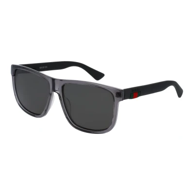 Secret SalesGucci Rectangle Mens Transparent Grey and Black Grey Polarized GG0010S Sunglasses are a sophisticated lightweight D-frame model with bi-chromatic styling. The frame is an easy to wear shape that suits the majority of face shapes and is completed by Gucci's distinctive red and green brand logo.