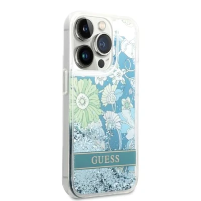 Guess Liquid Glitter Case With Flower Pattern For iPhone 14 Pro - Green Gives your car a new look Good product with exc\ Easy to install
