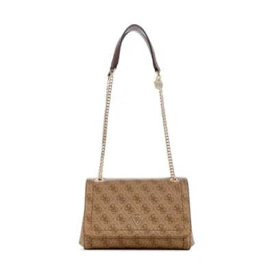 GUESS Noelle II Convertible Xbody Flap Bag Latte logo / brown, One Size