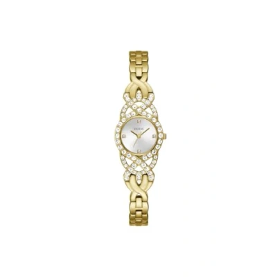 23mm gold-tone case 7.5 inch gold-tone g-link silver tone dial mineral glass lens Water resistant up to 10 meters