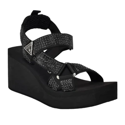 GUESS Women's Dawsin Sandal, Black 001, 2 UK