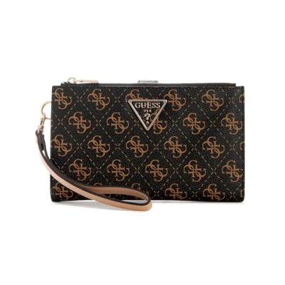 GUESS Women's Laurel Ii Double Zip Organizer Wallet, Brown Logo, One Size