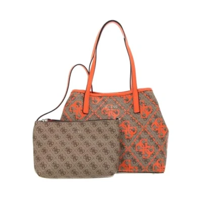 GUESS Women Vikky Large Tote Bag, Latte Logo/Orange, 40 x 31 18 cm